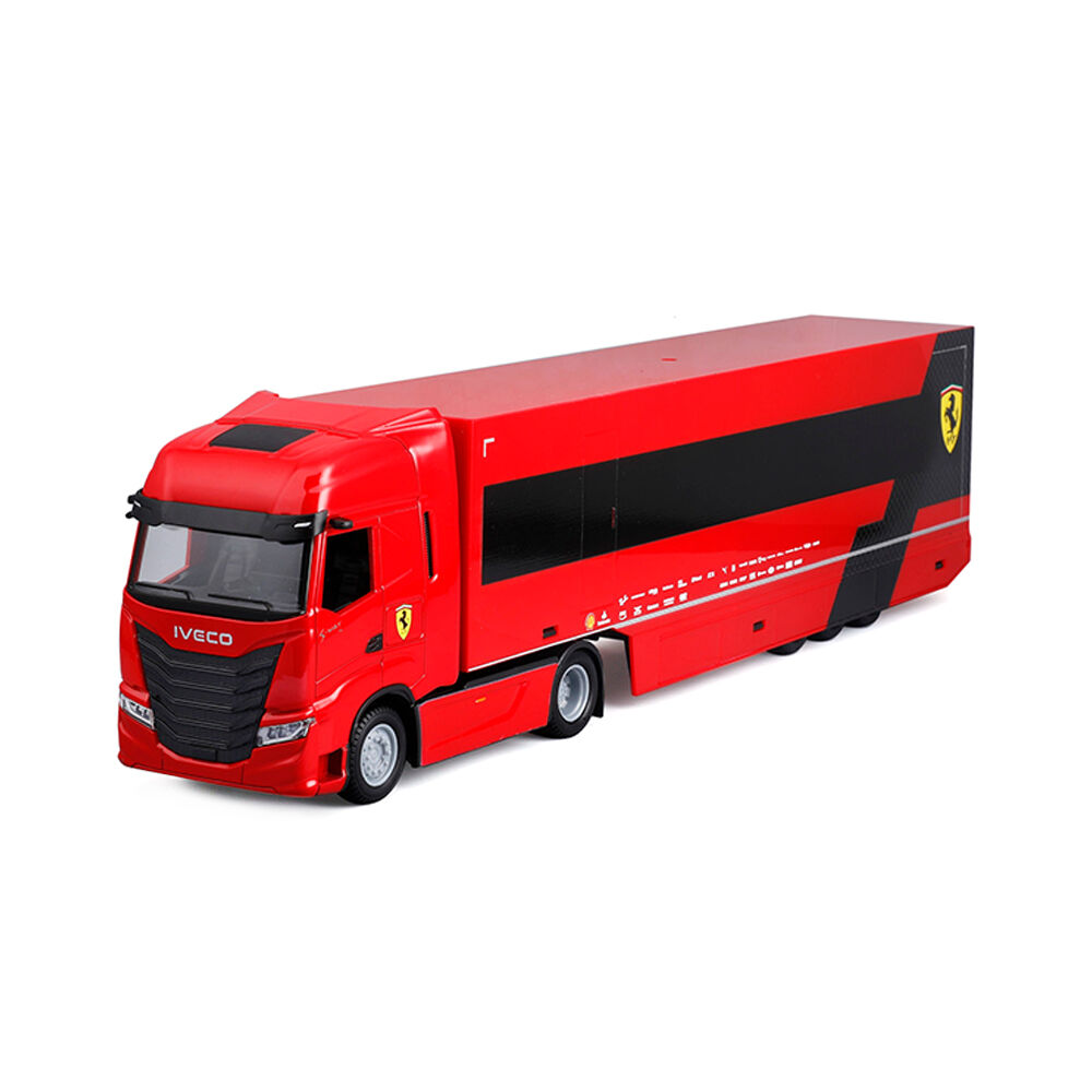 • The glossy red paint, sponsor emblems, precision wheels, and faithfully reproduced trailer make this set a must-have piece for Ferrari and elite motorsport fans