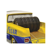 • Features a stack of tyres and rims that fit neatly in the rear tray of the utility