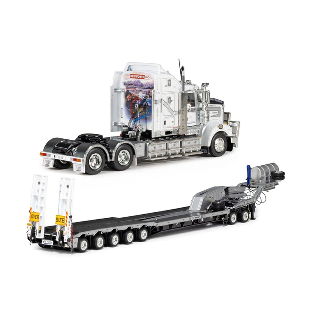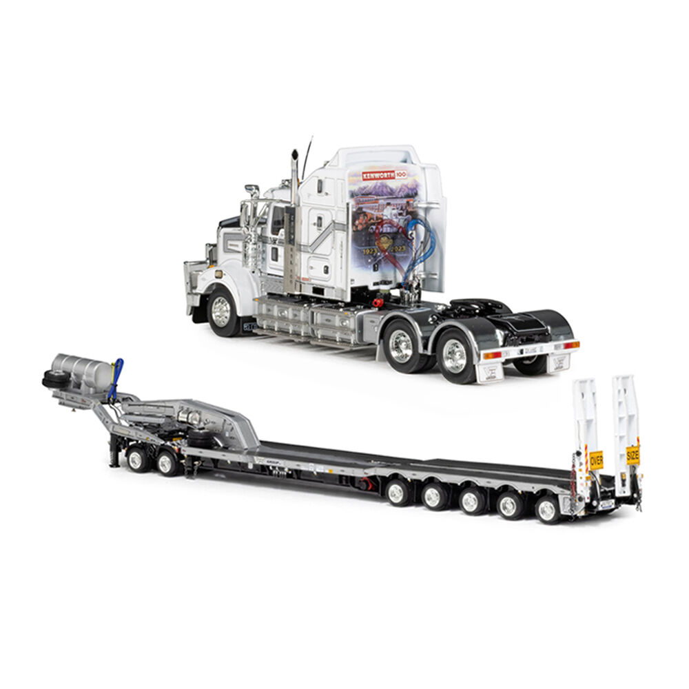 • This set include Kenworth T909 100 Year and 5x8 Swingwing Drop Deck and 2x8 Dolly