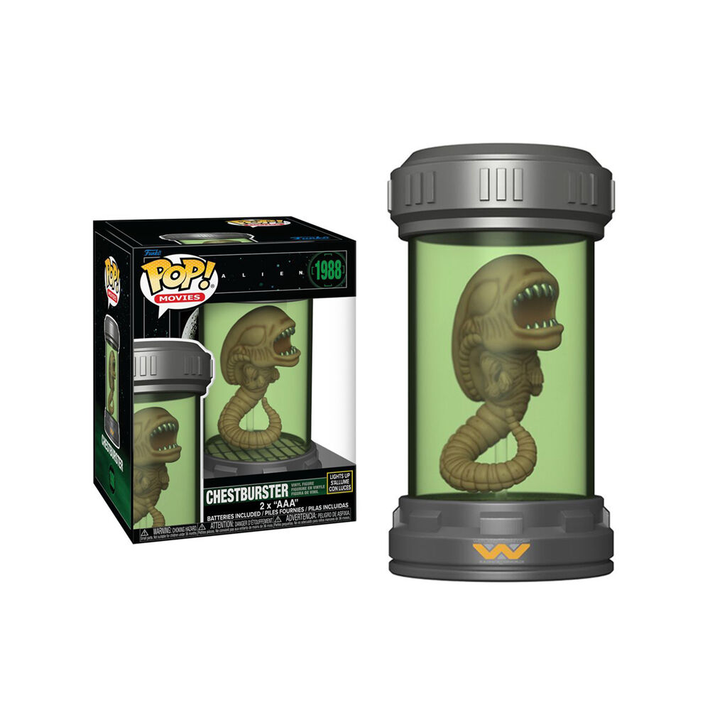 • This Funko POP! depicts the Chestburster curled inside a translucent green cylinder with dark gray caps at the top and base
