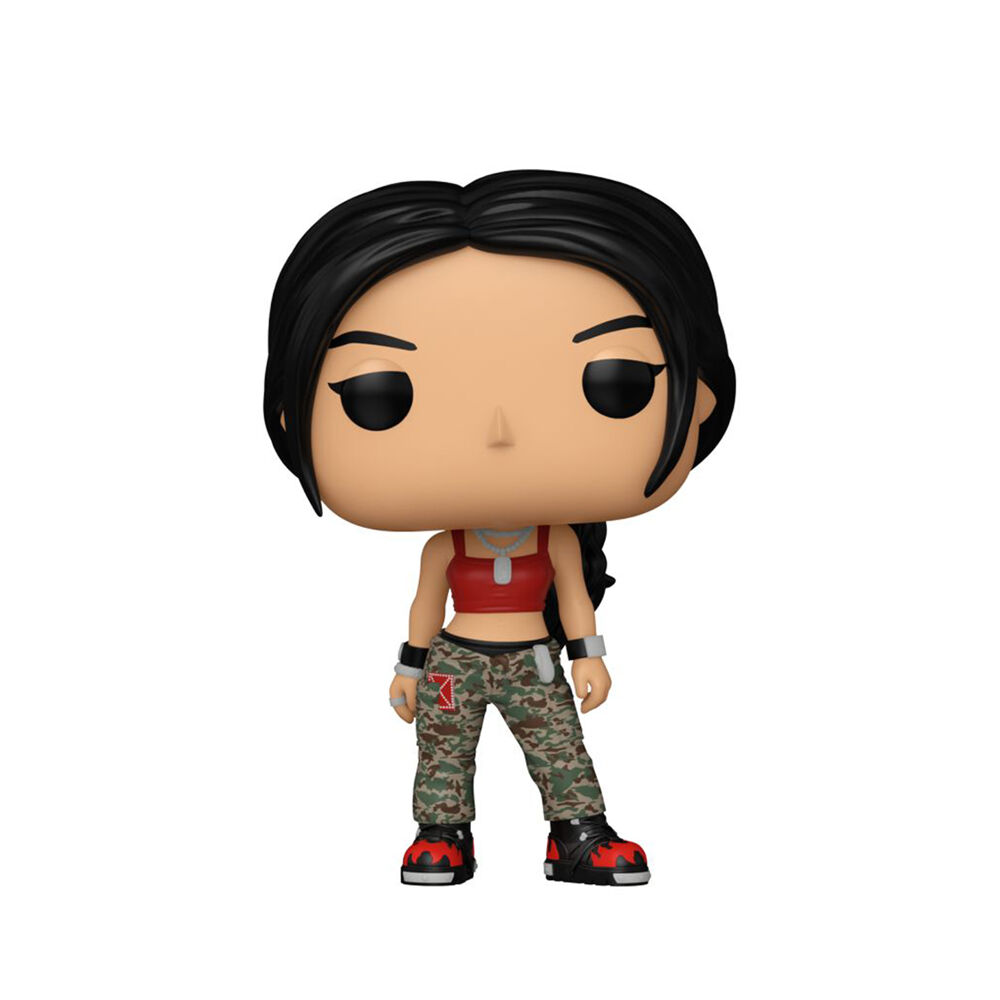 • The POP! figure stands in a straightforward, arms-at-sides pose with a neutral expression and long black hair pulled back with loose strands framing the face