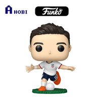 • The POP! shows the player mid-action with arms out for balance and one foot set near a white soccer ball on a green turf base