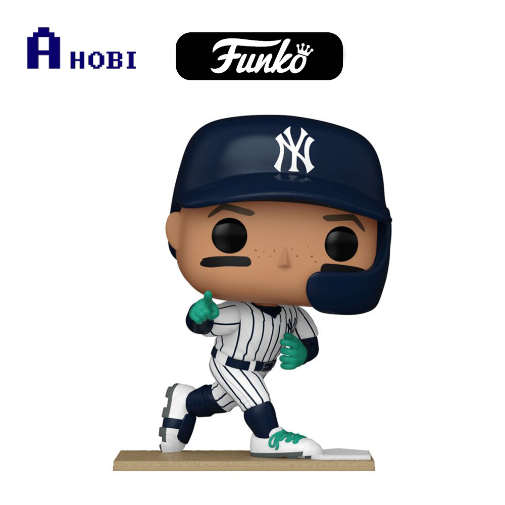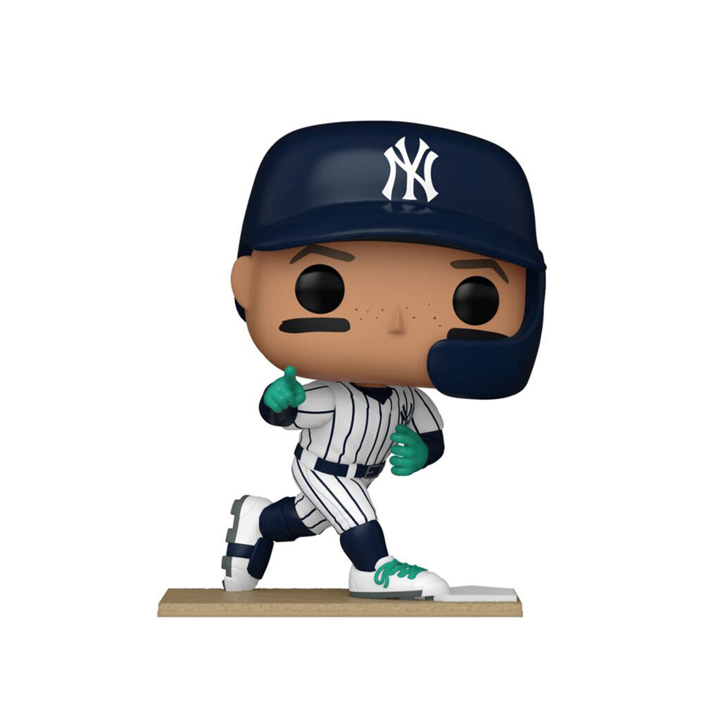 • The figure wears a navy batting helmet with the white "NY" mark and has black eye-black stripes under both eyes