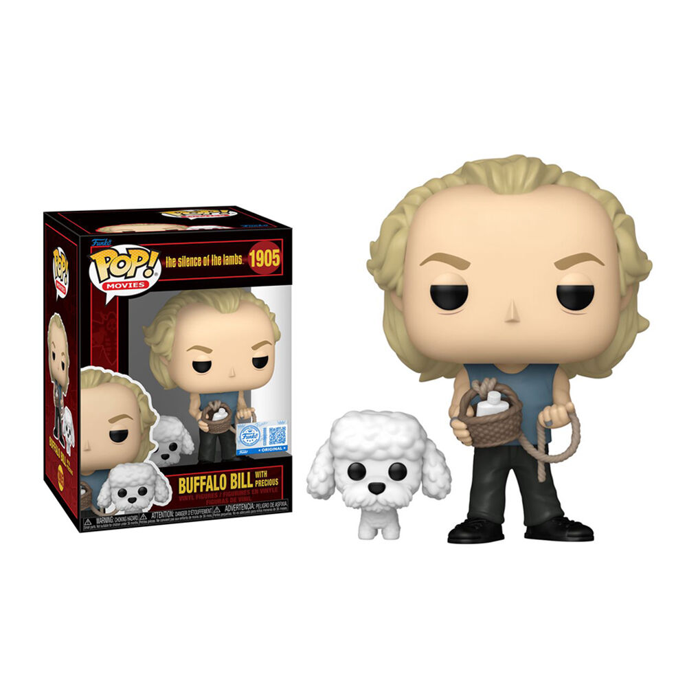 • The Buffalo Bill with Precious Pop! Vinyl Figure captures his unsettling look with basket and lotion in hand, paired with the infamous dog, making it a standout collectible for horror fans