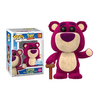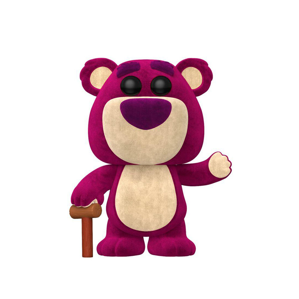 • Lotso stands upright with one arm raised as if waving, while the other hand rests on a brown cane