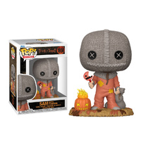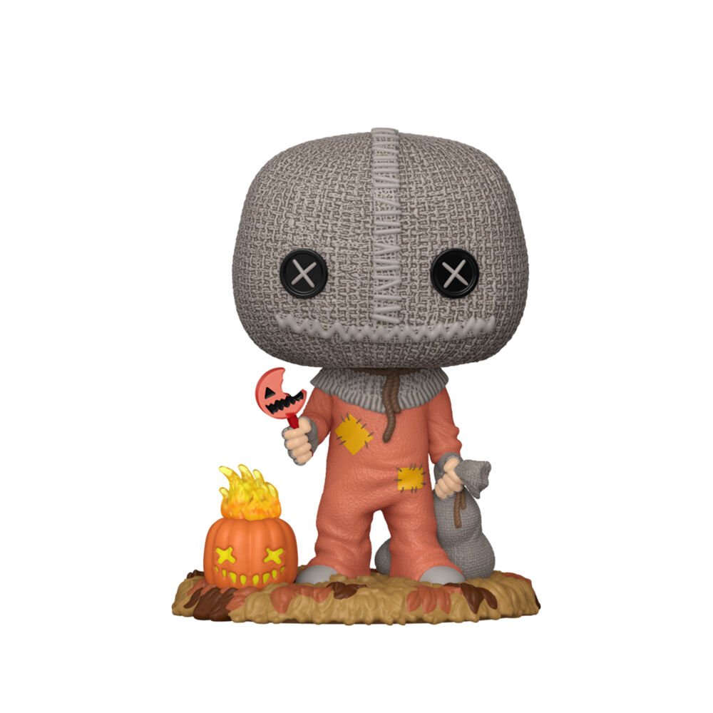 • This POP! captured Sam in a steady, front-facing stance with a stitched-sack head and button-like X eyes, plus a small jack-o’-lantern accent that made the figure feel instantly themed for Halloween displays and Movies shelves