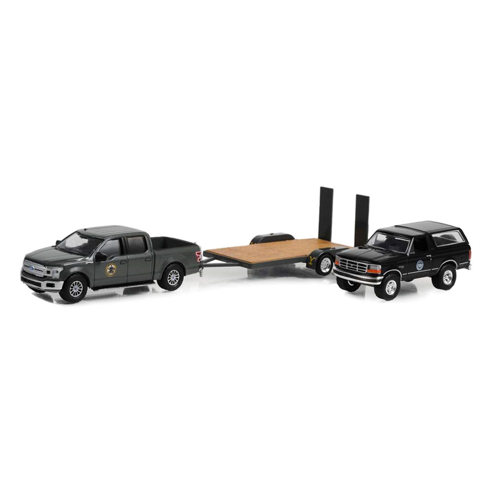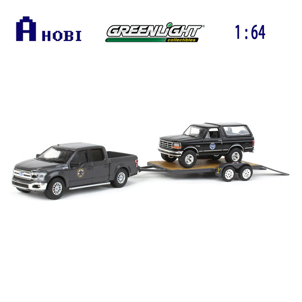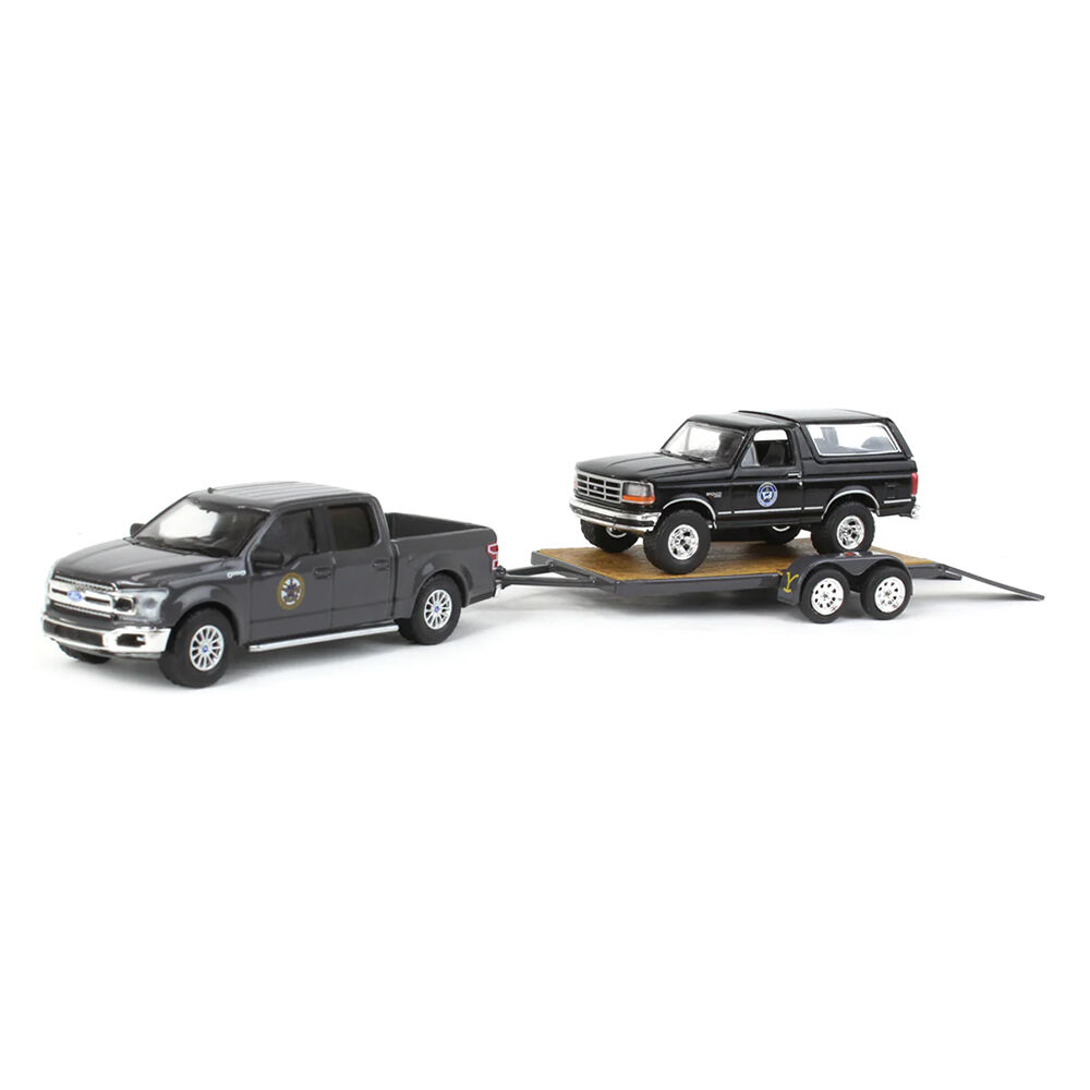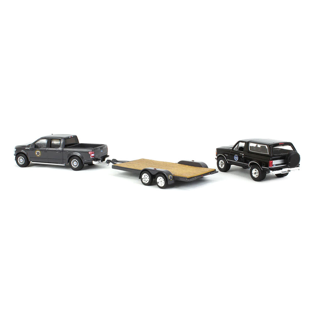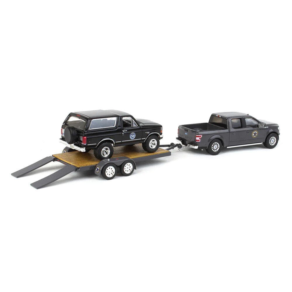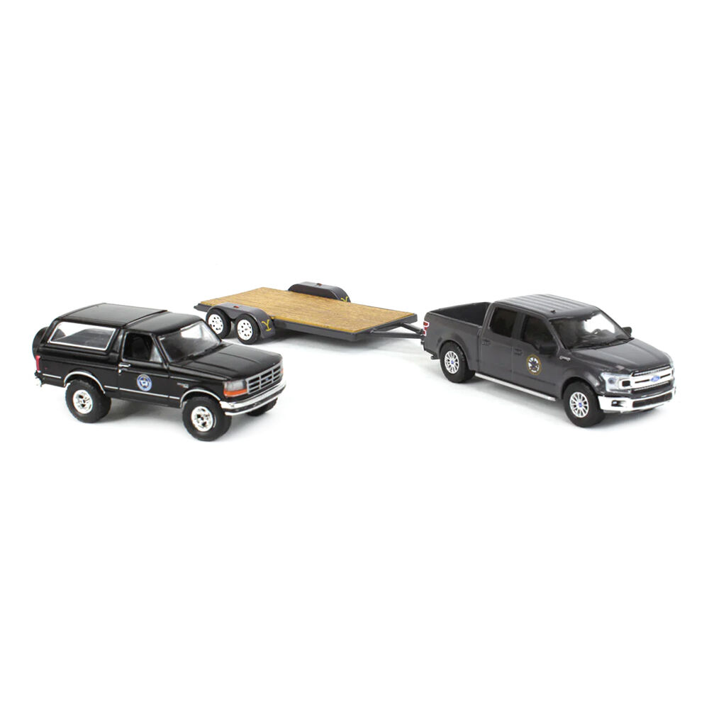 Greenlight 1:64 Scale Yellowstone 2018 Ford F-150 Montana Livestock Association With 1992 Ford Bronco Montana Livestock Hitch On Tow Series 11 Model