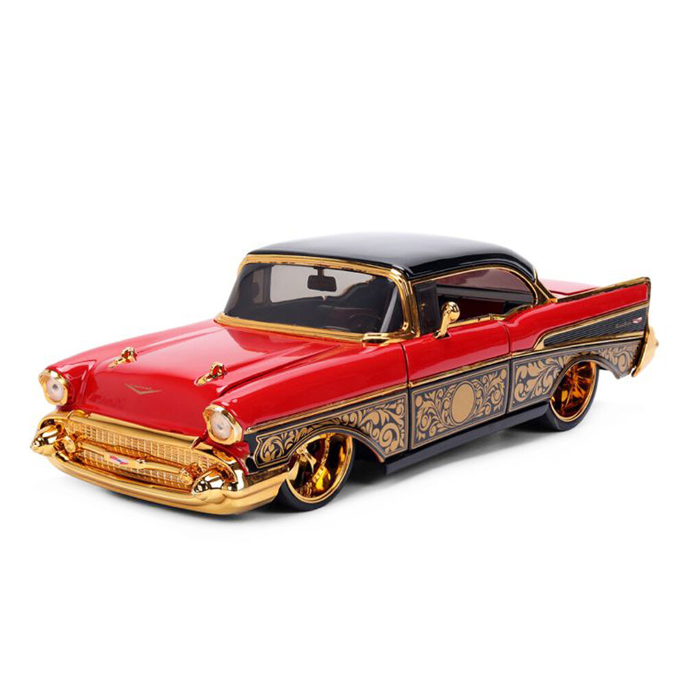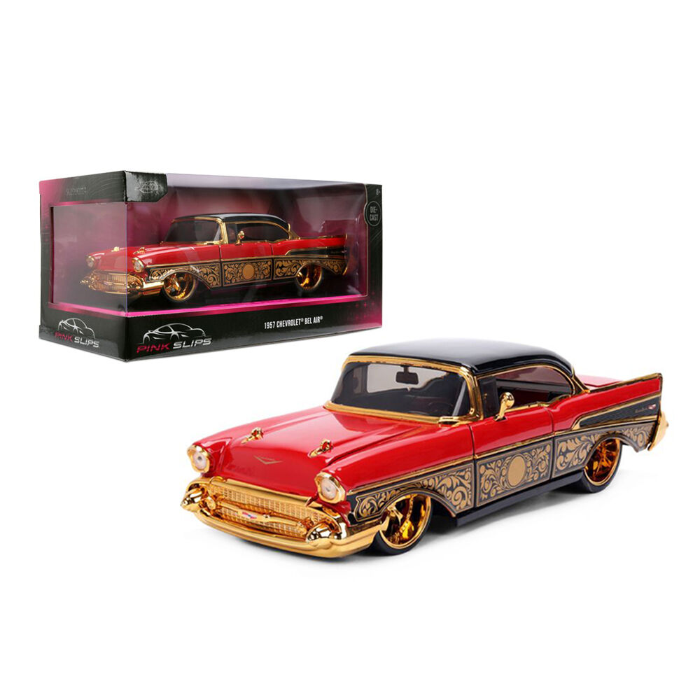 Jada 1:24 Scale Pink Slips - 1957 Chevrolet Bel Air Red Gold Model