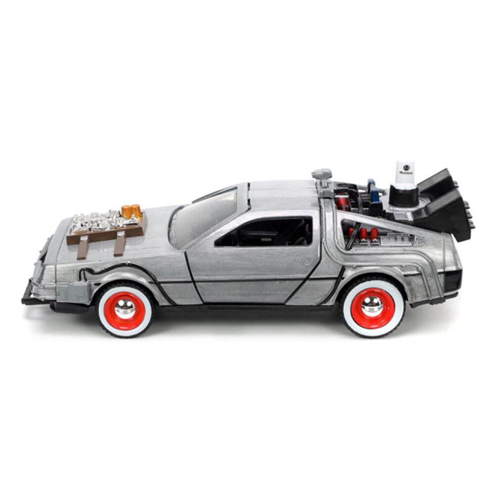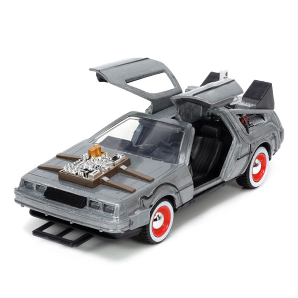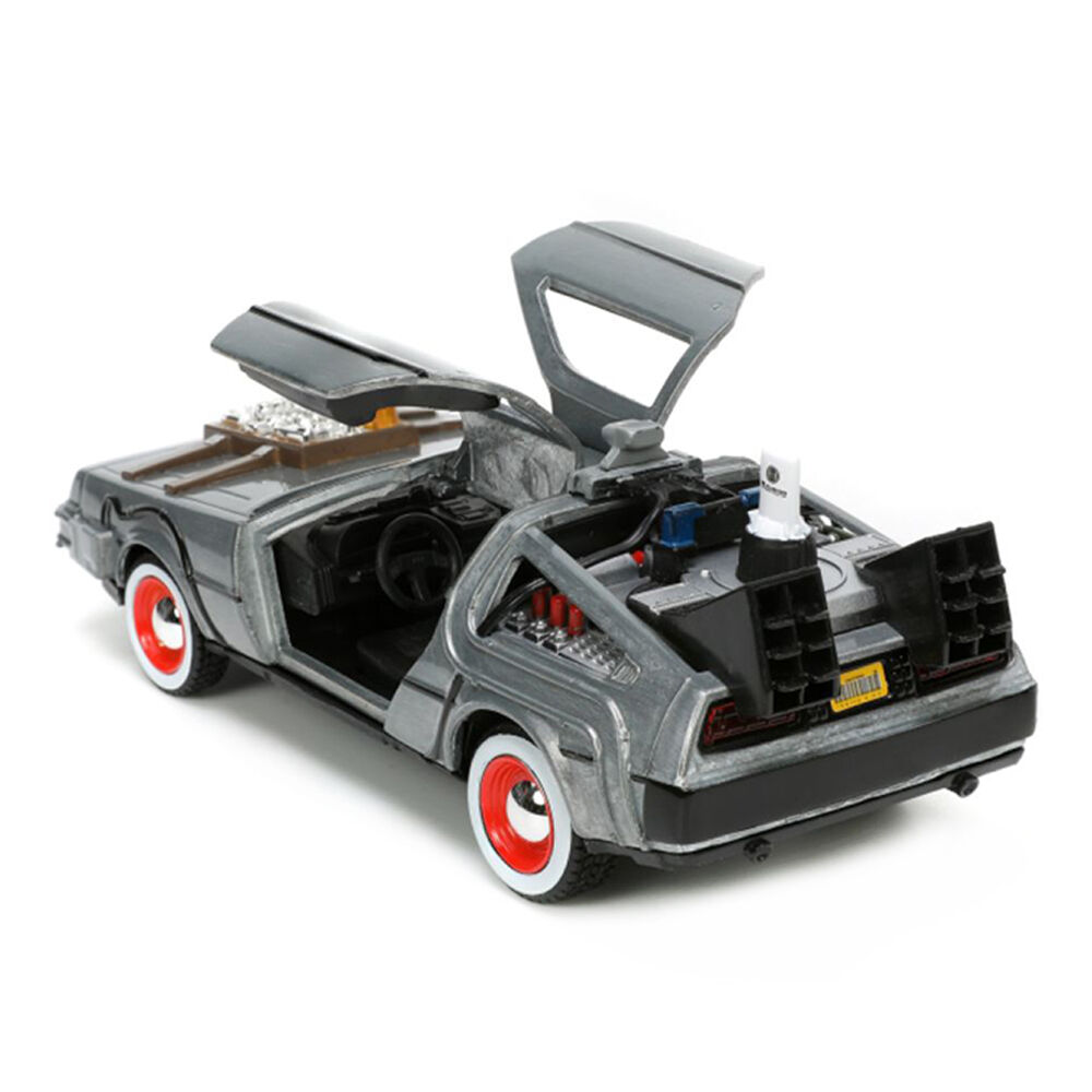 • Based on its appearance in Back to the Future Part III, the DeLorean Time Machine has been created with a die-cast body, opening doors and rubber tyres