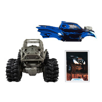 • Designed to fit all McFarlane DC Multiverse 7" Scale Figures, it features rolling wheels, an eye-catching black and blue paint job, custom Batman-shaped bodywork (which can even be removed to expose the underlying frame!), and gnarly exposed exhausts and engine pieces