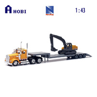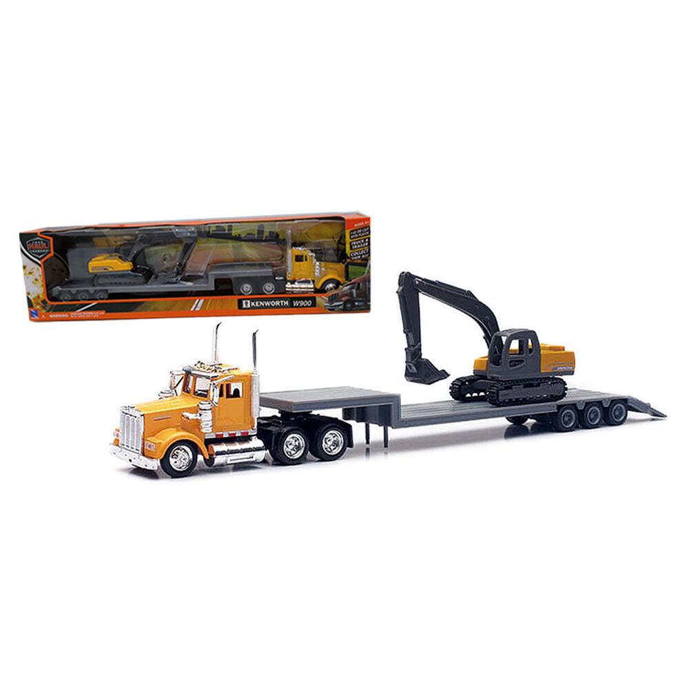 NewRay 1:43 Scale Kenworth W900 Low Loader With Excavator Model