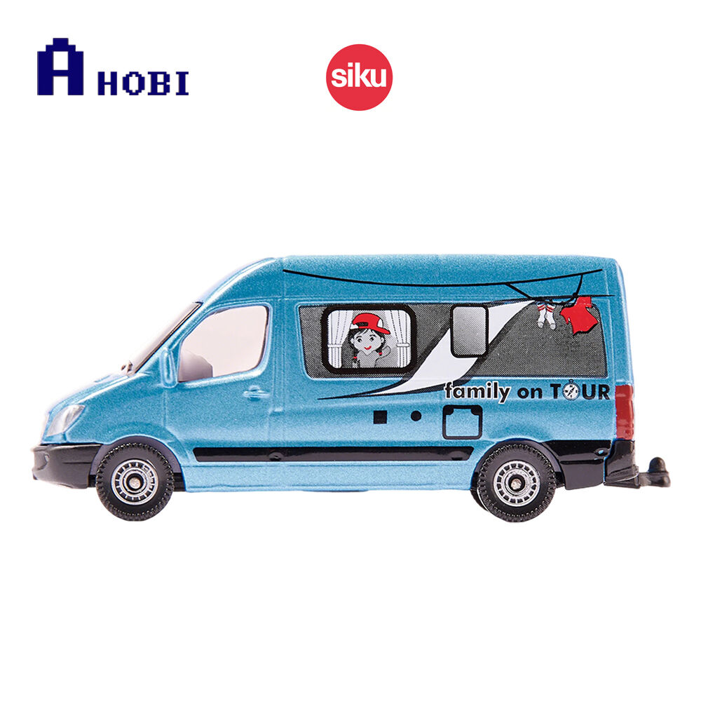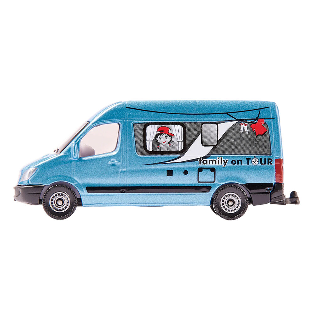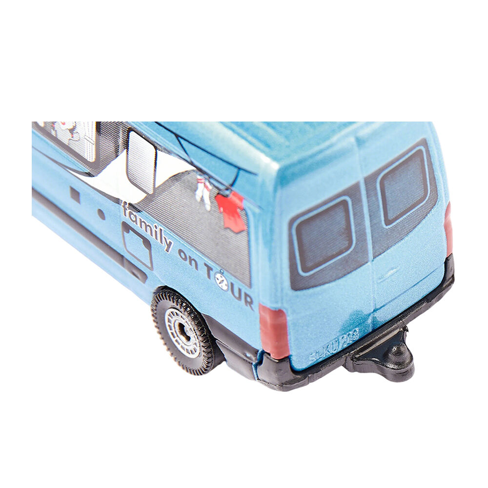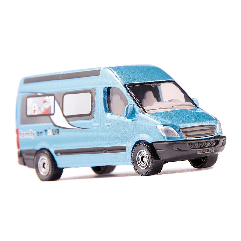 • The blue campervan with the cheerful 'family on TOUR' print is perfect for exciting journeys and imaginative adventures