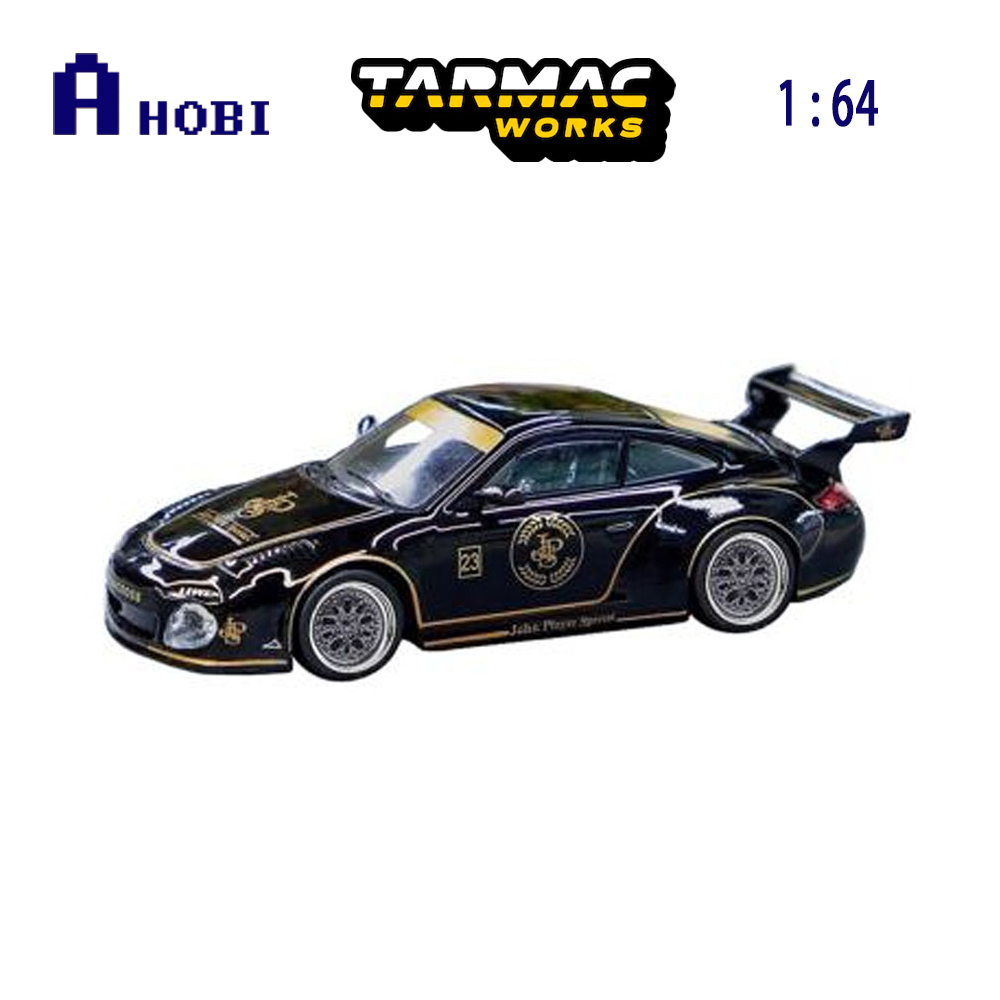 • Brand new 1:64 scale 997 Old & New Body Kit #23 Black with Gold Graphics "John Player Special" "Hobby64" Series diecast model car by Tarmac Works